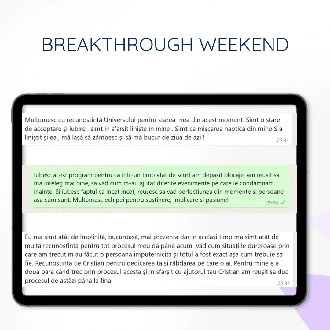 Înveți să lucrezi cu un proces prin care vei dizolva cel mai puternic tipar care te tine blocat/a, îți consuma energia si puterea.